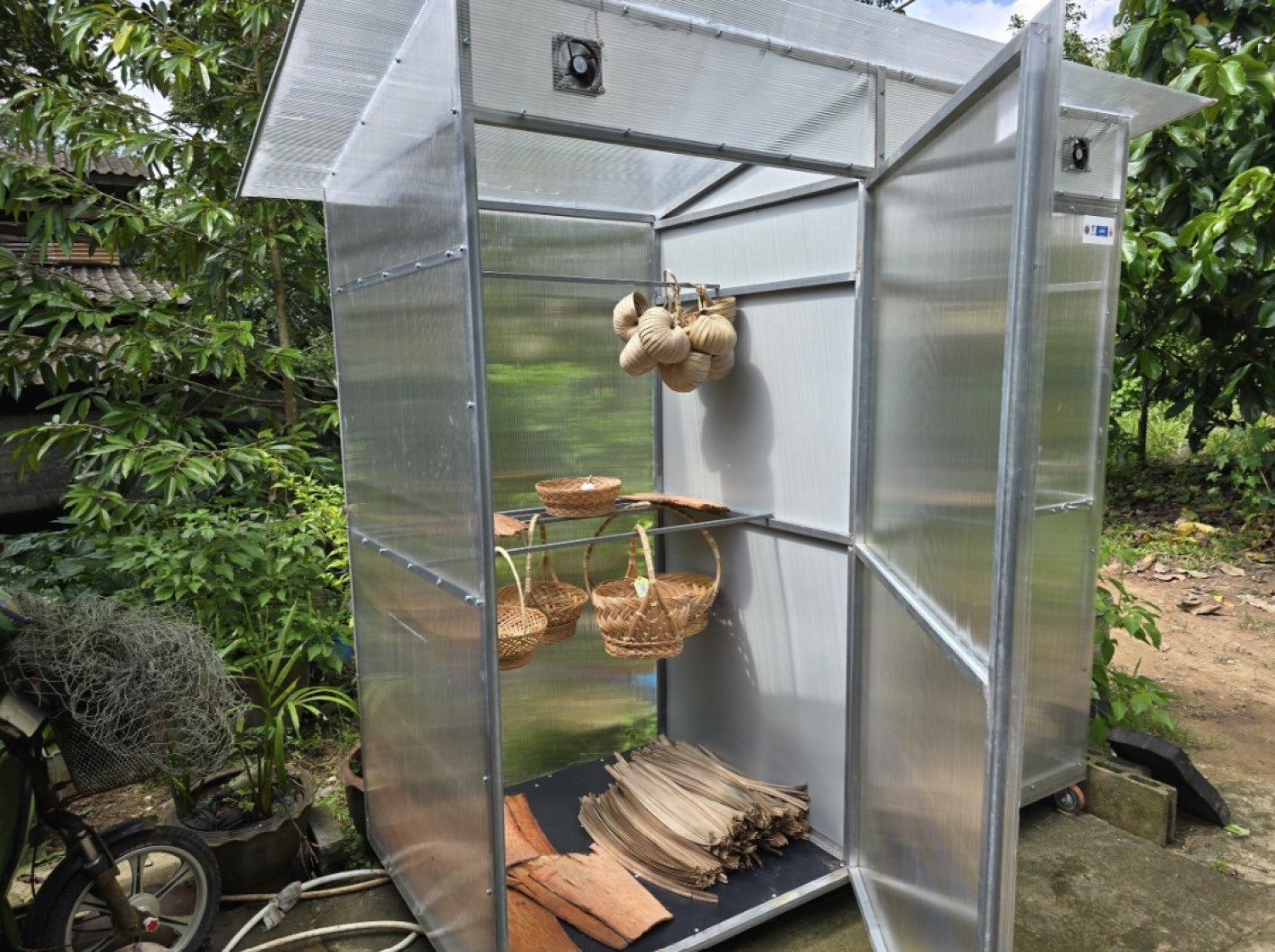 เป็นนวัตกรรมตู้อบใบจากและติหมาใบจาก โดยใช้แหล่งความร้อนจากแสงอาทิตย์ และสามารถใช้งานได้ในสภาวะที่ไม่มีแสงแดดโดยใช้แหล่งความร้อนเพิ่มเติมจาดฮีทเตอร์ไฟฟ้า สามารถใช้งานง่ายให้อัตราผลผลิตติหมาประมาณ 500 ใบต่อรอบการผลิต หรือใบจากประมาณ 5,000 ใบต่อรอบการผลิต