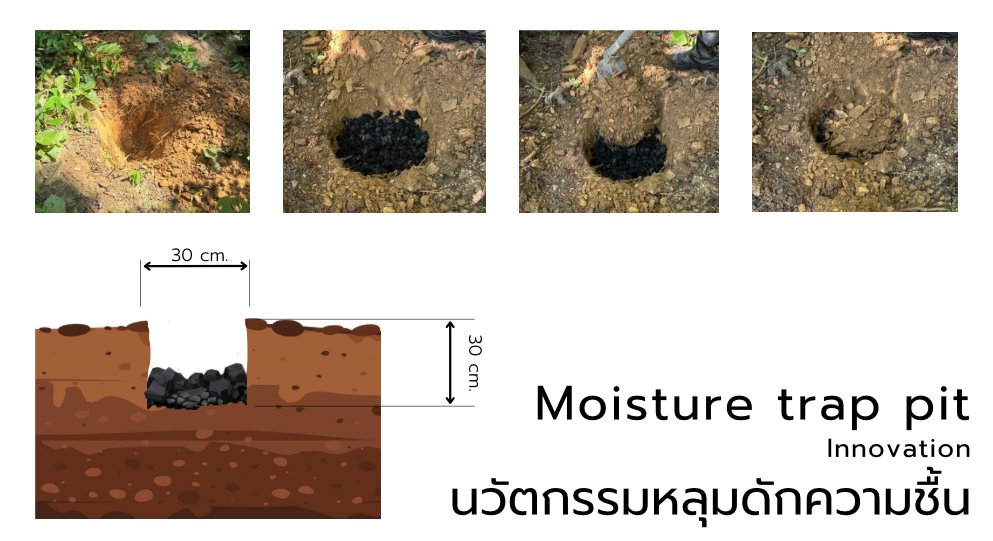 หลุมดักความชื้น (Moisture Trap Pit) เป็นนวัตกรรมที่ออกแบบมาเพื่อเพิ่มความชุ่มชื้นในพื้นที่ป่าผลัดใบ ซึ่งมักเผชิญกับปัญหาความแห้งแล้งและไฟป่าซ้ำซาก โดยใช้วิธีการขุดหลุมและเติมวัสดุอินทรีย์ เช่น ถ่านชีวภาพ (Biochar) เพื่อกักเก็บน้ำฝนและปลดปล่อยความชื้นในระยะยาว นอกจากช่วยฟื้นฟูสภาพป่าแล้ว ยังสามารถนำมาใช้เป็นฐานสำหรับ ใส่น้ำเชื้อเห็ดป่าท้องถิ่น เช่น เห็ดถอบ หรือเห็ดละโงก เพื่อกระตุ้นการเกิดดอกเห็ดในฤดูฝน เพิ่มโอกาสสร้างรายได้จากการเก็บเห็ดธรรมชาติของชาวบ้าน โดยเฉพาะครัวเรือนที่อยู่แนวชายป่า ถือเป็นแนวทางพัฒนาเศรษฐกิจฐานรากอย่างยั่งยืน โดยใช้ทรัพยากรที่มีอยู่แล้วในพื้นที่และภูมิปัญญาท้องถิ่นมาผสมผสานกับเทคโนโลยีง่าย ๆ ที่สามารถถ่ายทอดต่อได้ในระดับครัวเรือน