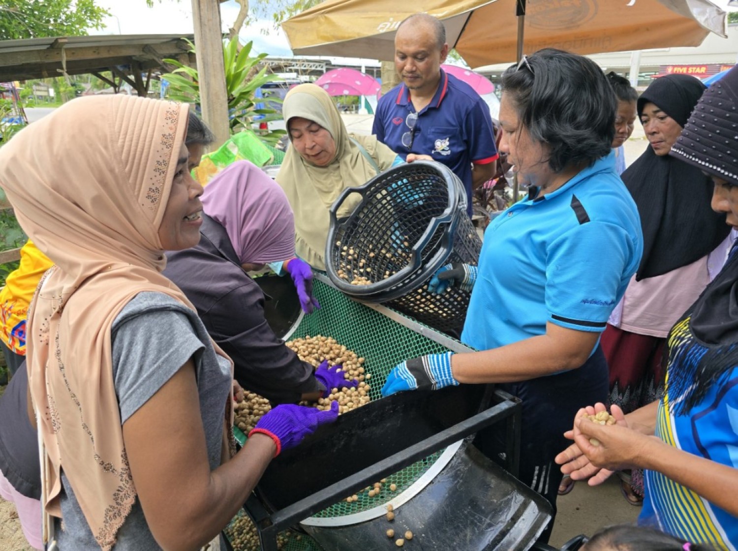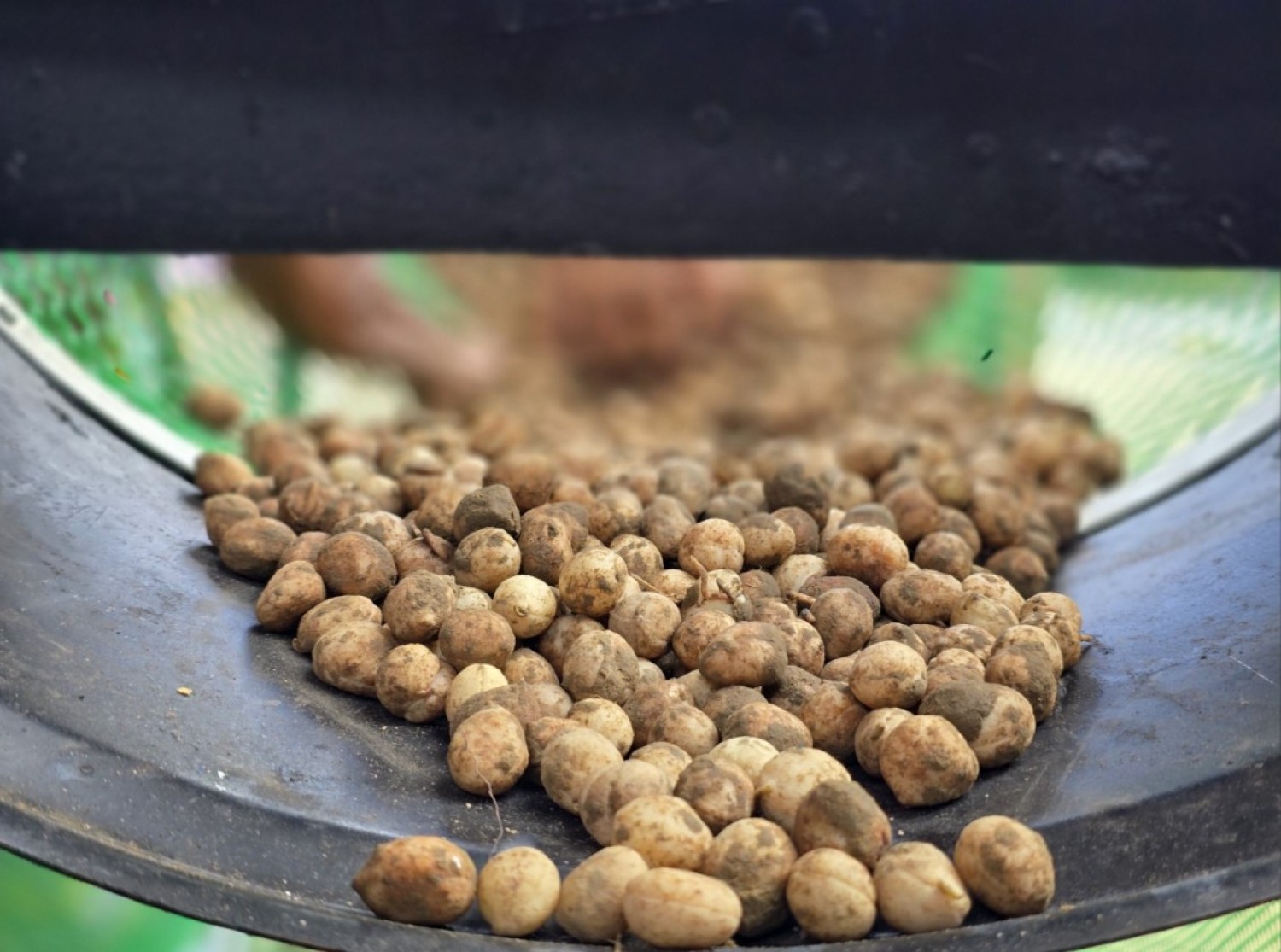 อุปกรณ์คัดแยกขนาดเมล็ดถั่วหรั่งให้เป็น 2 ขนาด คือขนาดใหญ่ ไว้สำหรับเมล็ดสด และเมล็ดขนาดเล็กเพื่อเก็บไว้ทำเมล็ดพันธุ์ โดยมีการใช้วัสดุอย่างง่ายทำเป็นตะแกรงสำหรับคัดแยกเมล็ดถั่วหรั่ง สามารถเปลี่ยนขนาดของตาข่ายได้ ใช้งานง่าย ให้อัตราการคัดแยกเมล็ดในอัตราผลผลิตต่อหน่วยในเวลาสูง มีความปลอดภัย ราคาประหยัด