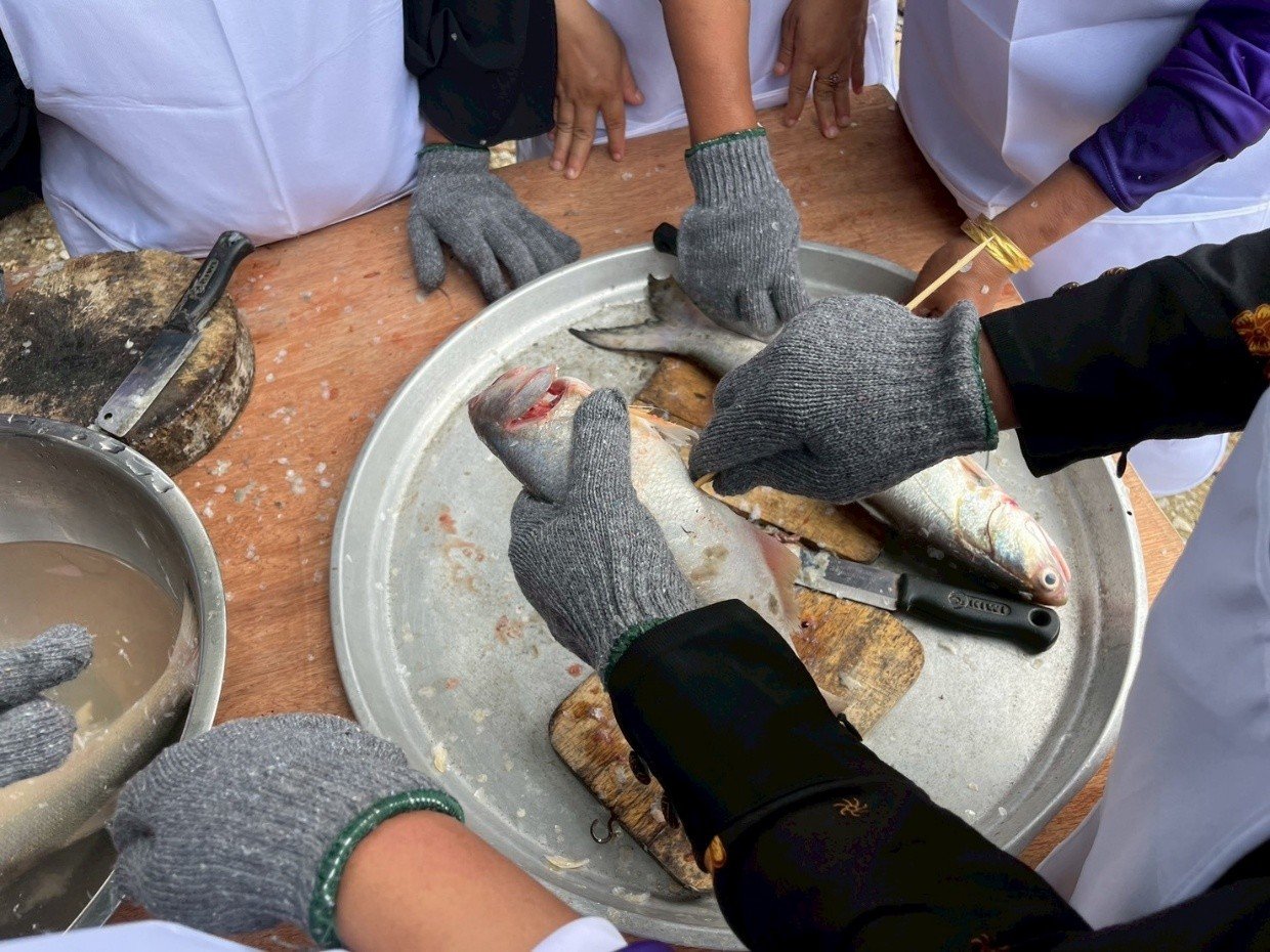 หลังจากนั้นนำปลาที่หมักไว้มาล้างทำความสะอาด