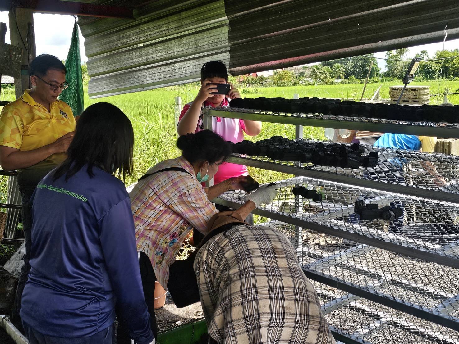 การตากแห้ง โดยนำเชื้อเพลิงอัดแท่งจากของแข็งทอร์รีไฟด์จากมูลช้างที่ได้จากข้อ