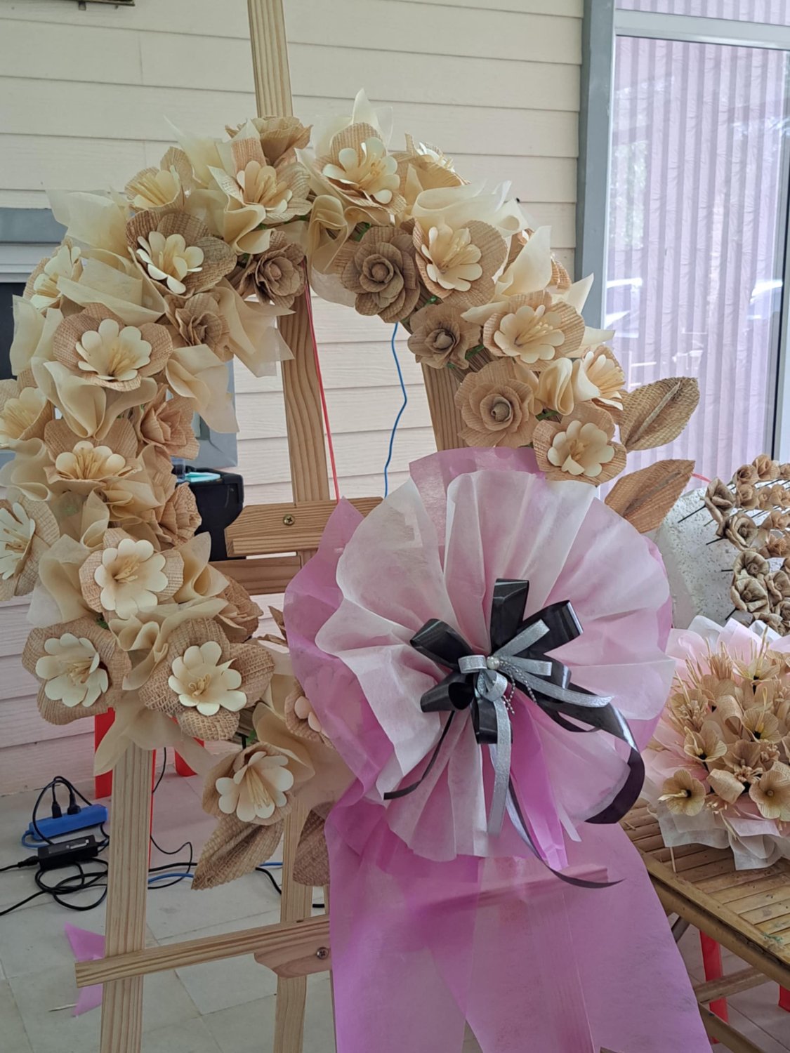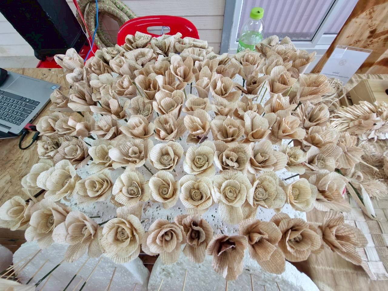 ซึ่งชุมชนนำแผ่นกาบกล้วยมาประดิษฐ์เป็นดอกไม้จันทน์ พวงดหรีด ช่อประธานในงานศพ