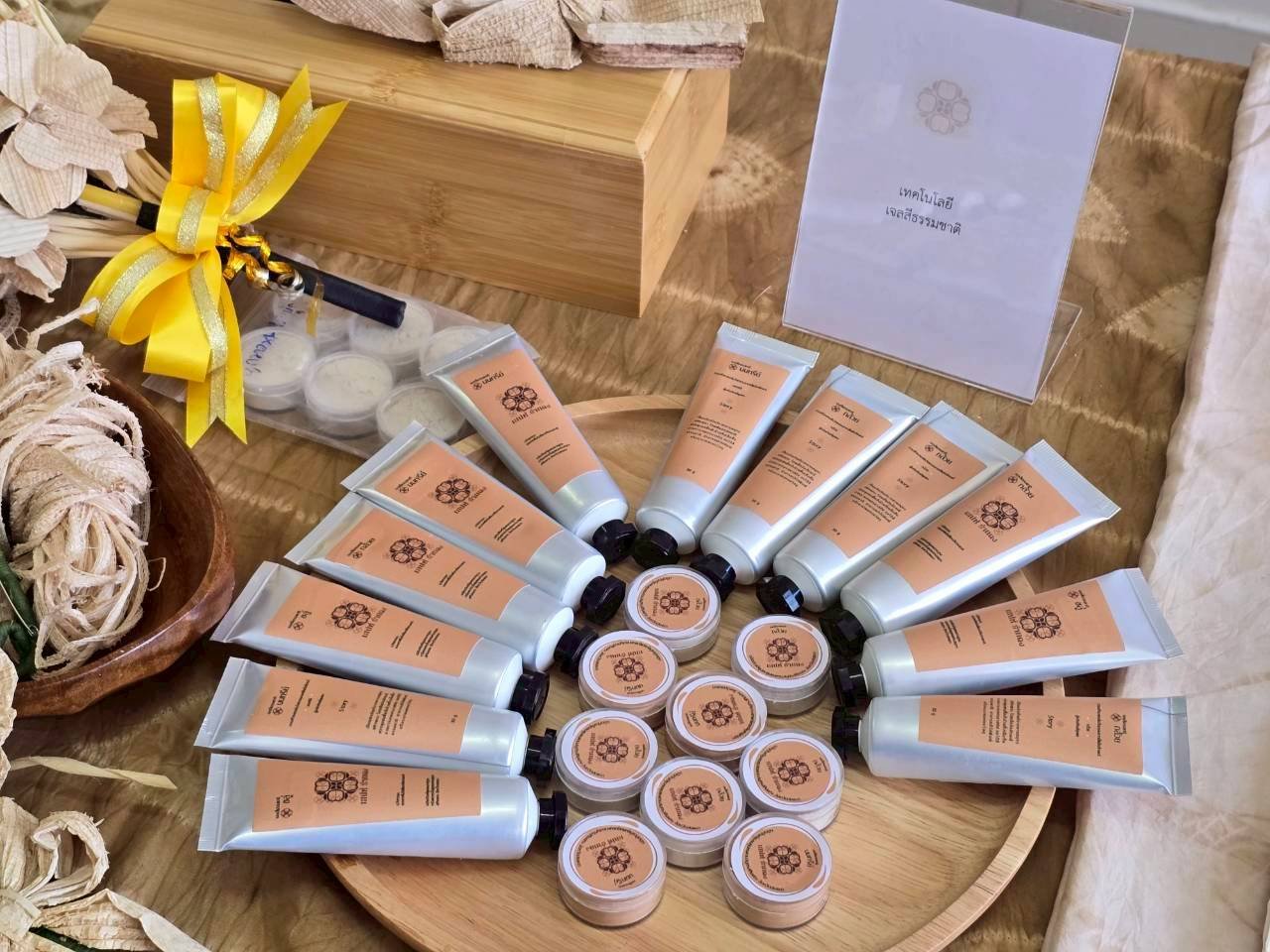 นวัตกรรม “เจลสีธรรมชาติ” เกิดจากการผสานองค์ความรู้ทางวิทยาศาสตร์เข้ากับแนวคิดสร้างสรรค์ เพื่อแก้ไขข้อจำกัดของกระบวนการพิมพ์ลายผ้าด้วยสีธรรมชาติแบบดั้งเดิม ซึ่งมักมีขั้นตอนซับซ้อน ใช้เวลานาน สีไม่คงทน และพึ่งพาสารเคมีที่อาจส่งผลกระทบต่อผู้ใช้และสิ่งแวดล้อม จากการลงพื้นที่สำรวจคณะนักวิจัยได้เล็งเห็นโอกาสในการพัฒนาเทคโนโลยีที่เหมาะสม โดยมุ่งเน้นการสร้างสรรค์ “เจลสีธรรมชาติ” ที่ใช้งานง่าย เพิ่มประสิทธิภาพ และยั่งยืนต่อการผลิต โดยใช้โอลิโกแซ็กคาไรด์ ซึ่งเป็นคาร์โบไฮเดรตโมเลกุลสายกลางที่มีคุณสมบัติในการก่อเจลที่อุณหภูมิห้องและให้เนื้อสัมผัสที่เหมาะสม ช่วยให้เม็ดสียึดเกาะกับเส้นใยผ้าได้ดี และทนต่อการซักล้าง การพัฒนาเจลสีนี้จึงเป็นผลลัพธ์ของการบูรณาการองค์ความรู้ด้านเคมีธรรมชาติกับเทคโนโลยีชีวภาพ นำไปสู่นวัตกรรมที่ตอบโจทย์ทั้งด้านคุณภาพ ความสะดวกในการใช้งาน และการพัฒนาอุตสาหกรรมสิ่งทอยั่งยืนในระดับชุมชนอย่างแท้จริง