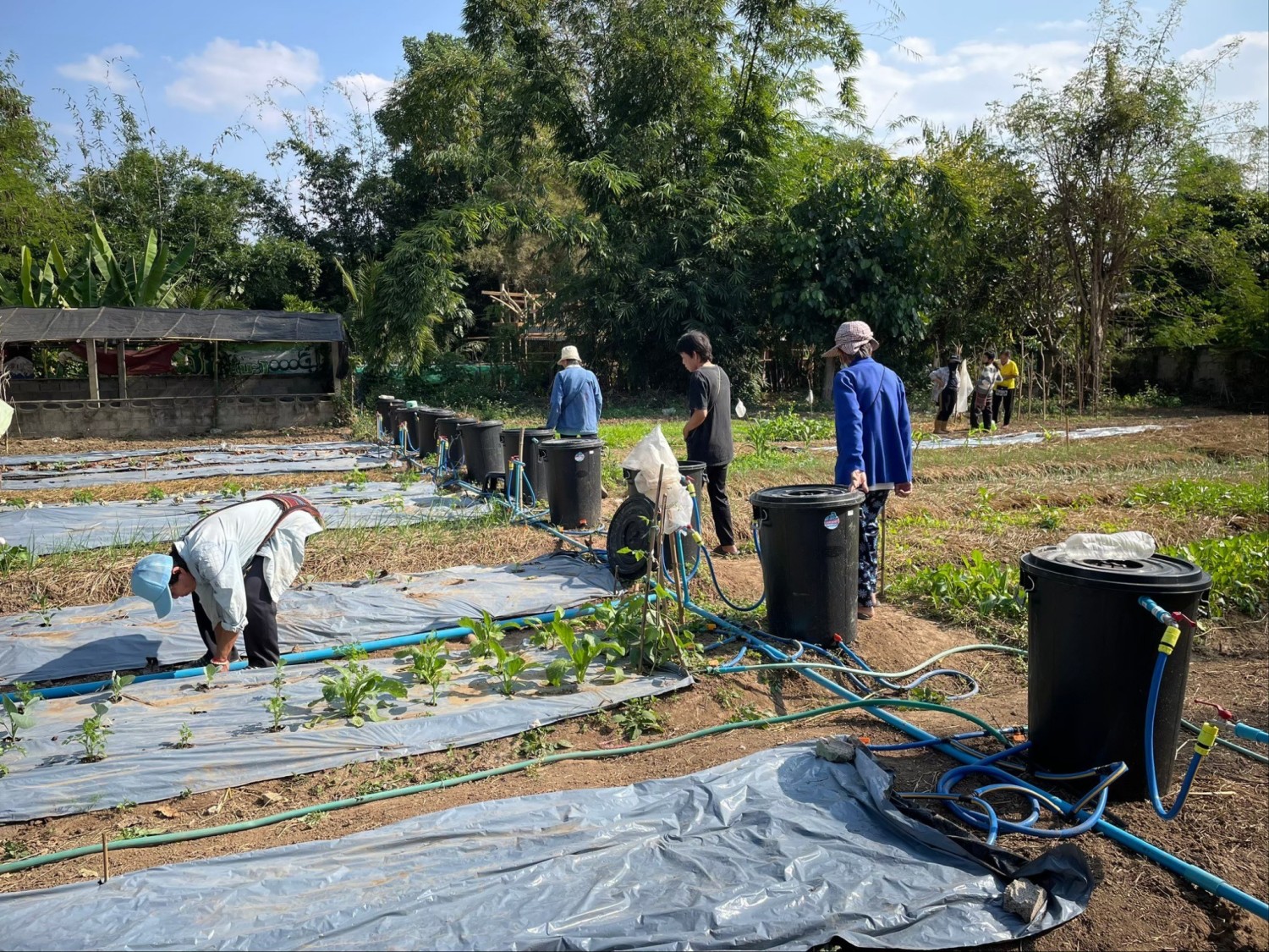 ประกอบด้วยอุปกรณ์สายยางส่งน้ำ เช่น สายยางอ่อน PVC ข้อต่อสามทาง