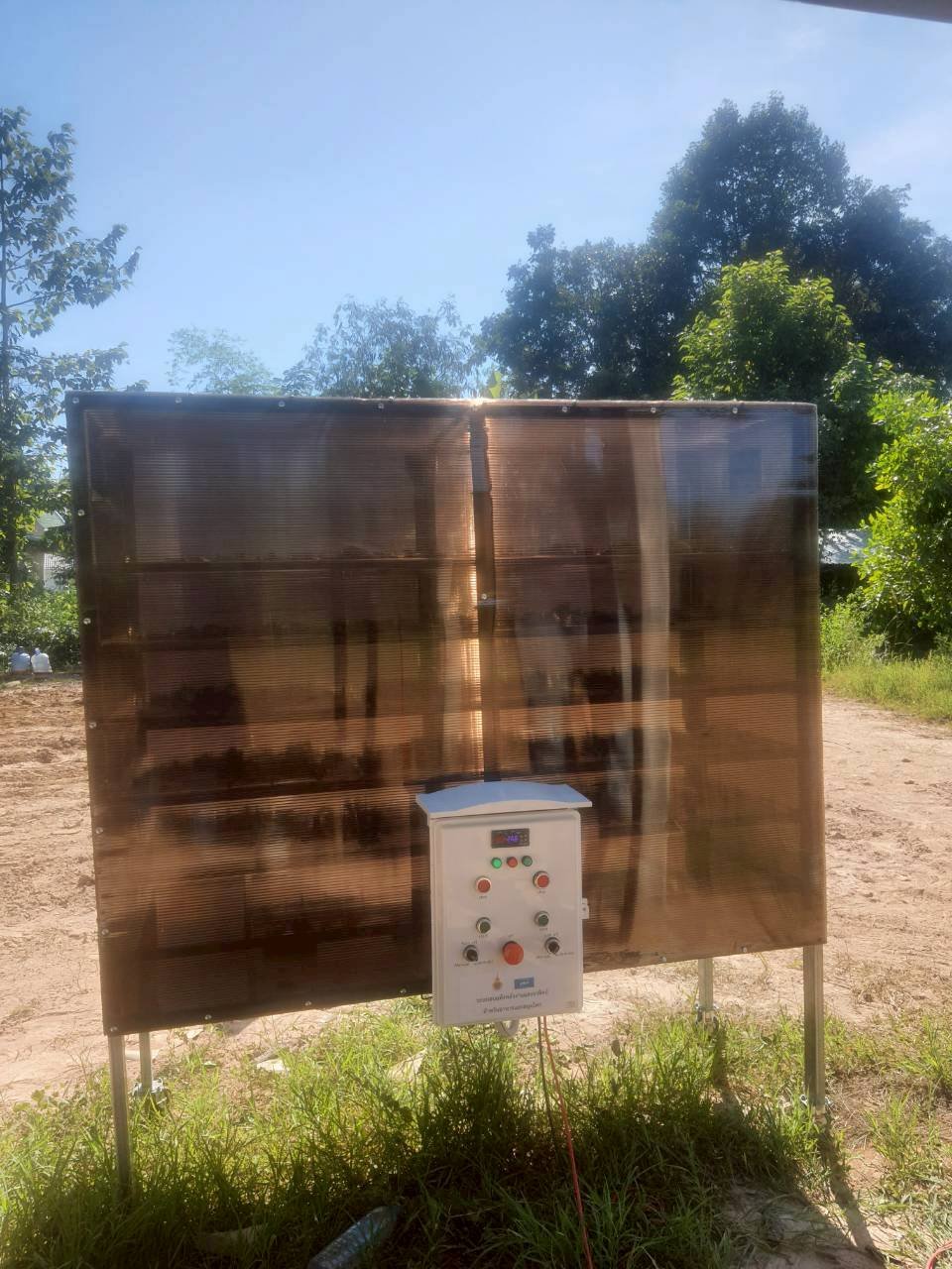 - เครื่องอบ ตัวโรงอบมีขนาดเป็นรูปทรงสีเหลี่ยมมีด้าน กว้าง ยาว สูง มีพื้นที่สำหรับอบ สมุนไพรดดยจะแบ่งเป็นชั้นๆ สามารถบรรจุได้ทั้งหมด 5 ชั้น โดยพืชที่เหมาะสมในการอบจะเป็นพืชตระกูลใบ และพืชตะกูลที่ใช้ดอกเป็นหลัก ตระกูลใบเช่น ใบหม่อน ใบตะใคร้ ใบมะกูด ตระกุลดอกเช่น ดอกพะยอม ดอกมะลิ ดอกซ่อนกลิ่น เป็นต้น