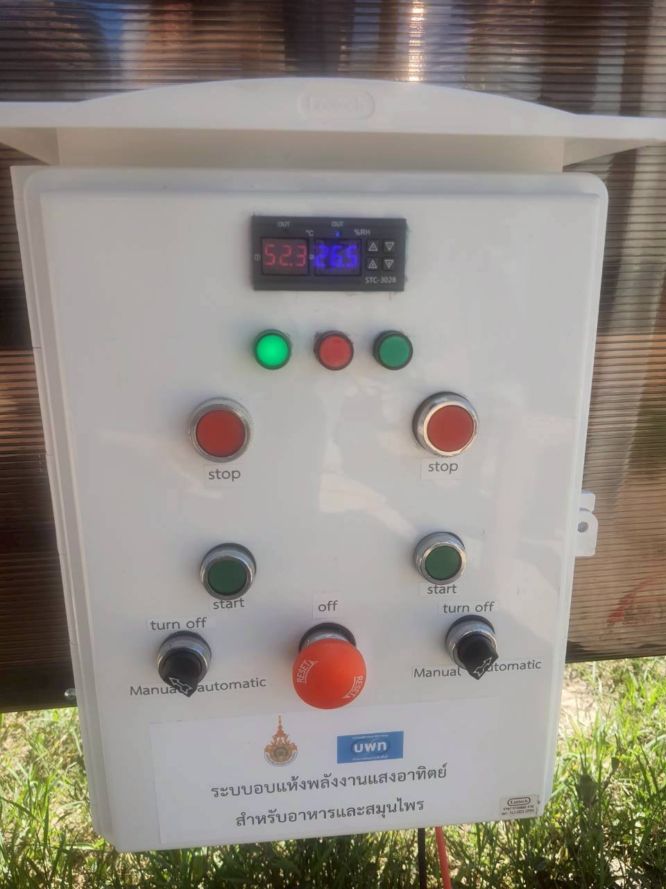 - การทำงานของเครื่องอบแห้งสมุนไพรจะแบ่งการทำงานออกเป็น 2 ระบบ คือ ระบบควคุมเอง และระบบควบคุมอัตโนมัติ(ตามค่าอุณหภูมิ และความชื้น)