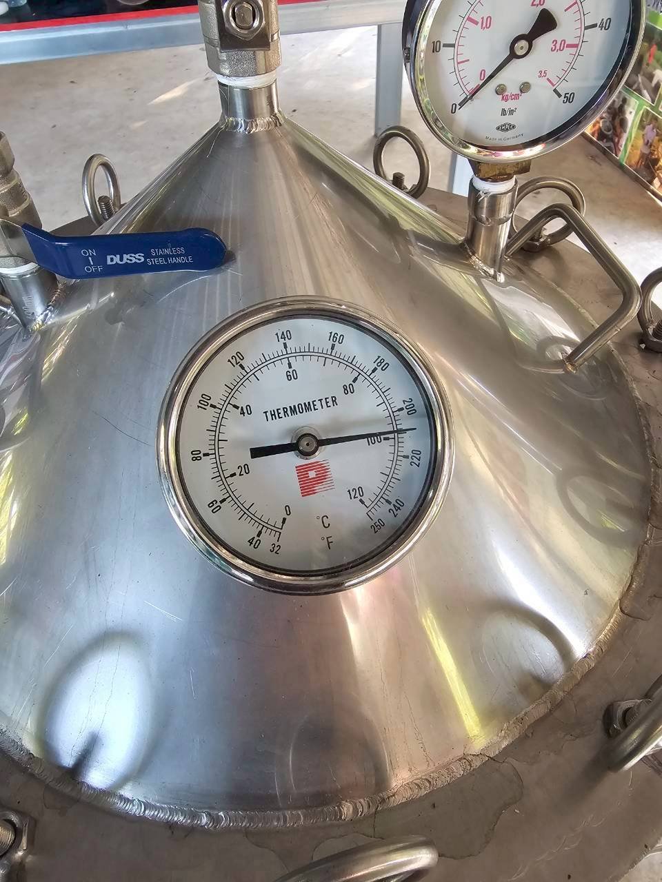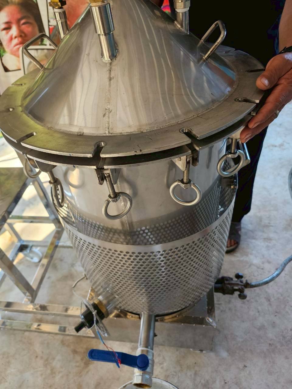 - ตัวถังส่วนใหญ่ทำจากสแตนเลสหนามีขนาด 50 ลิตร มีฝาปิดและตัวล็อกเพื่อรักษาแรงดันและป้องกันการรั่วของไอน้ำ เหมาะกับการต้มน้ำและวัตถุดิบตะไคร้หอมจนเดือด