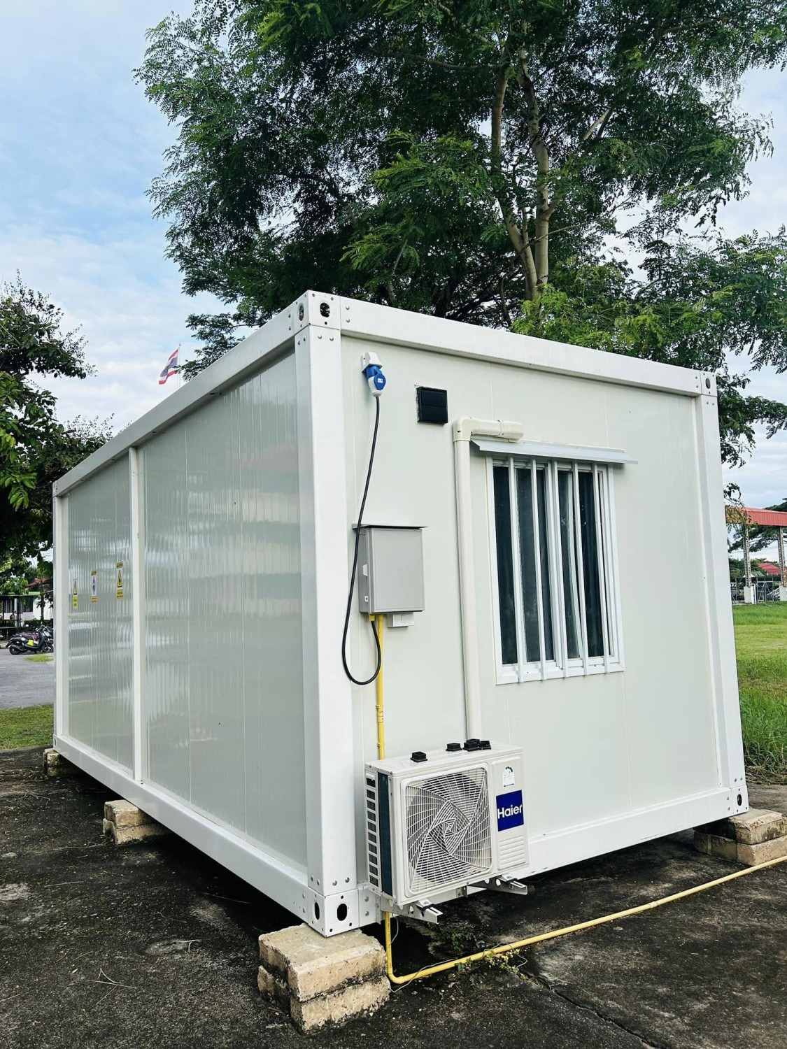 ผิวภายนอกเป็นเมทัลชีทหนา 3 มิลลิเมตร เพื่อป้องกันความร้อนจากภายนอก (2) อุปกรณ์ที่ทำหน้าที่ควบคุมอุณหภูมิคือเครื่องปรับอากาศ ขนาด 12,300 BTU/hr ซึ่งเหมาะสมกับปริมาตรภายในตู้คอนเทนเนอร์ที่ประมาณ