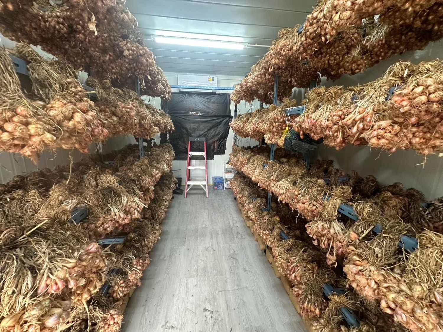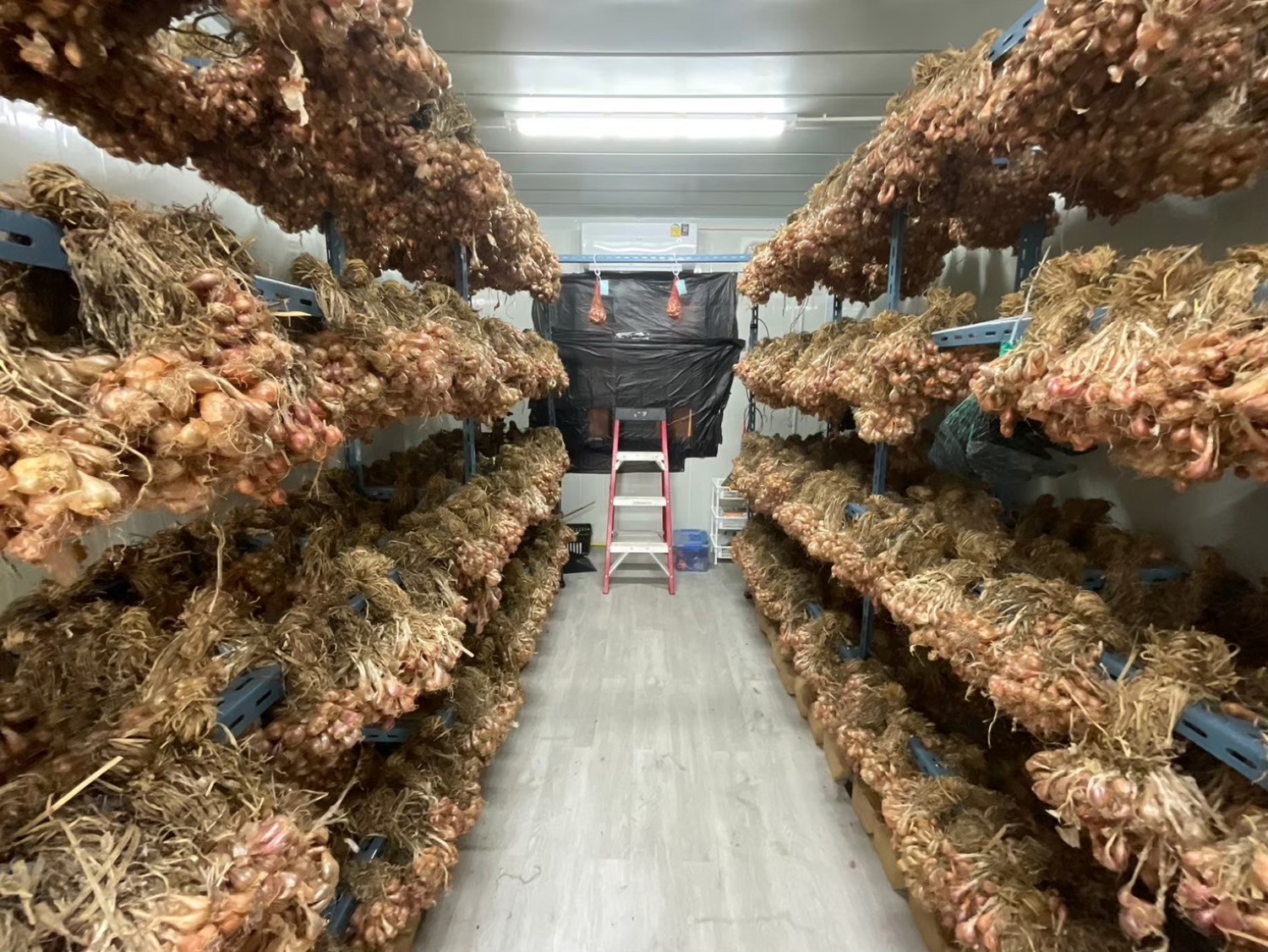 เทคโนโลยีห้องเก็บหัวพันธุ์หอมแบ่งนั้น จะมีการจัดเก็บหัวพันธุ์หอมแบ่งภายในตู้คอนเทนเนอร์ที่ควบคุมสภาพแวดล้อมที่เหมาะสมกับการเก็บรักษาหัวพันธุ์หอมแบ่งได้ เช่น อุณหภูมิ ความชื้น ระดับคาร์บอนไดออกไซด์ โดยมีองค์ประกอบที่สำคัญได้แก่ การใช้ผนัง Isowall หรือ Sandwich Panel แบบ EPS FOAM เพื่อป้องกันความร้อนจากภายนอก, การติดตั้ง เครื่องปรับอากาศเพื่อควบคุมอุณหภูมิภายในอย่างคงที่, การใช้ พัดลมดูดอากาศและระบบเซนเซอร์ เพื่อควบคุมระดับความชื้นและก๊าซคาร์บอนไดออกไซด์ให้อยู่ในระดับที่เหมาะสม จากการทดสอบระบบพบว่าหากเก็บรักษาหัวพันธุ์หอมแบ่งไว้ในระยะเวลา 180 วัน ระบบสามารถเก็บรักษาหัวพันธุ์ไว้ได้ประมาณ 73% ในขณะที่เก็บไว้ภายนอกจะเหลือเพียง 32%