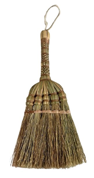 ไม้กวาดดอกหญ้าข้าวฟ่างขนาดเล็ก 5 ลูก ใช้กวาดบนโต๊ะ ซอกหน้าต่าง วิธีการถักนำดอกหญ้าข้าวฟ่าง15-20 ต้น มามัดรวมกันตรงก้านดอกหญ้าใกล้โคนต้น 5 ลูก ด้ายไนล่อนเบอร์ 24 นำไม้ไผ่มาเสียบเพื่อเชื่อมต่อแล้วถักตรงต้นเข้ากับไม้ไผ่
