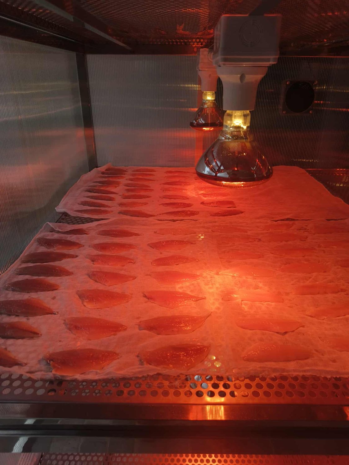 ทะลุทะลวงสูง: รังสีอินฟราเรดสามารถส่งผ่านความร้อนเข้าไปถึงโมเลกุลน้ำภายในเนื้อปลาได้โดยตรง (Radiant Heat) ทำให้ระเหยน้ำจากข้างในออกมาข้างนอกได้ดีกว่าลมร้อนที่แค่เป่าผิว