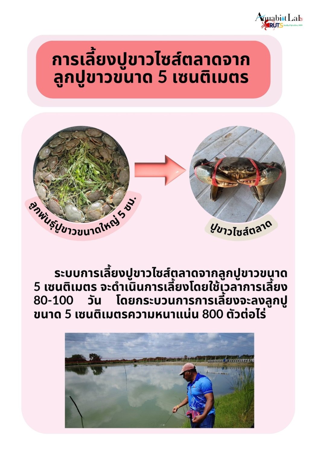 SOP ระบบการเลี้ยงปูขาวไซส์ตลาดจากลูกปูขาวขนาด 5
