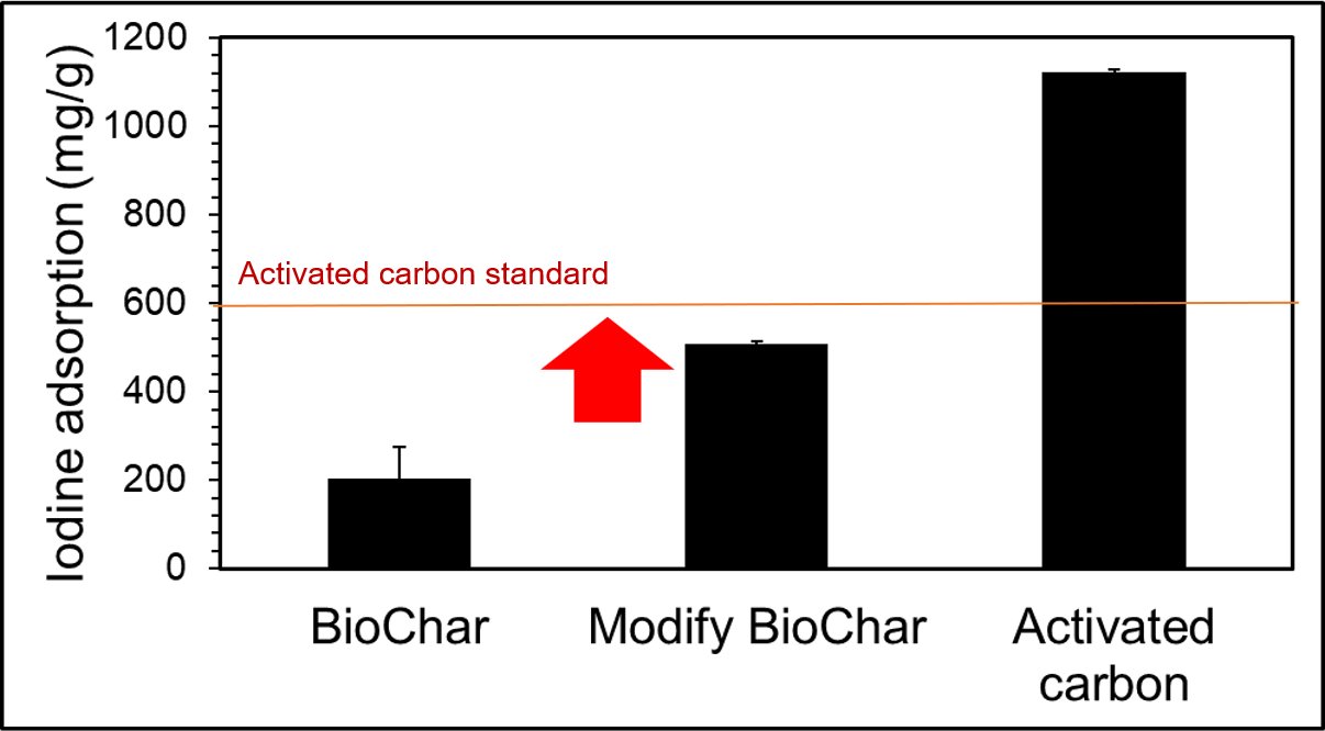 เทคโนโลยีการกระตุ้นทางเคมีเพื่อผลิตถ่านกัมมันต์แบบต้นทุนต่ำ สามารถใช้เตาเผาชุมชนในการคาร์บอไนเซชัน ให้เป็นถ่านที่มีรูพรุนระดับถ่านกัมมันต์ได้ โดยไม่ต้องเพิ่มอุปกรณ์อื่น