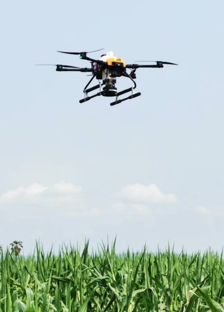 ระบบหว่านสารเคมีแบบอัดเม็ดด้วยอากาศยานไร้นักบินทางการเกษตรแบบขึ้นลงทางดิ่งแบบหลายใบพัดที่เป็นระบบปัญญาประดิษฐ์ที่ติดตั้งกลไกเครื่องพ่นละอองเกสรสำหรับการผสมเกสรเกษรของการผลิตเม็ดพันธุ์ข้าวโพดลูกผสมที่แก้ไขด้านข้อจำกัดเกี่ยวกับคุณสมบัติของเกสรข้าวโพดที่มีการเสื่อมสภาพเร็วเทคโนโลยีนี้เป็นเทคโนโลยีเพื่อช่วยผสมเกสรของการพัฒนาการผลิตเมล็ดพันธุ์ผสมเพื่อการค้าสำหรับการพัฒนาข้าวโพดพันธุ์ผสม 30-50 ไร่/วันโดยผลของการพัฒนาสามารถใช้เป็นต้นแบบระบบอัตโนมัติขนาดเล็กนี้จะที่ก่อให้เกิดรูปแบบการผลิตข้าโพดรูปแบบใหม่การใช้พื้นที่ลดลงมากถึง1ใน