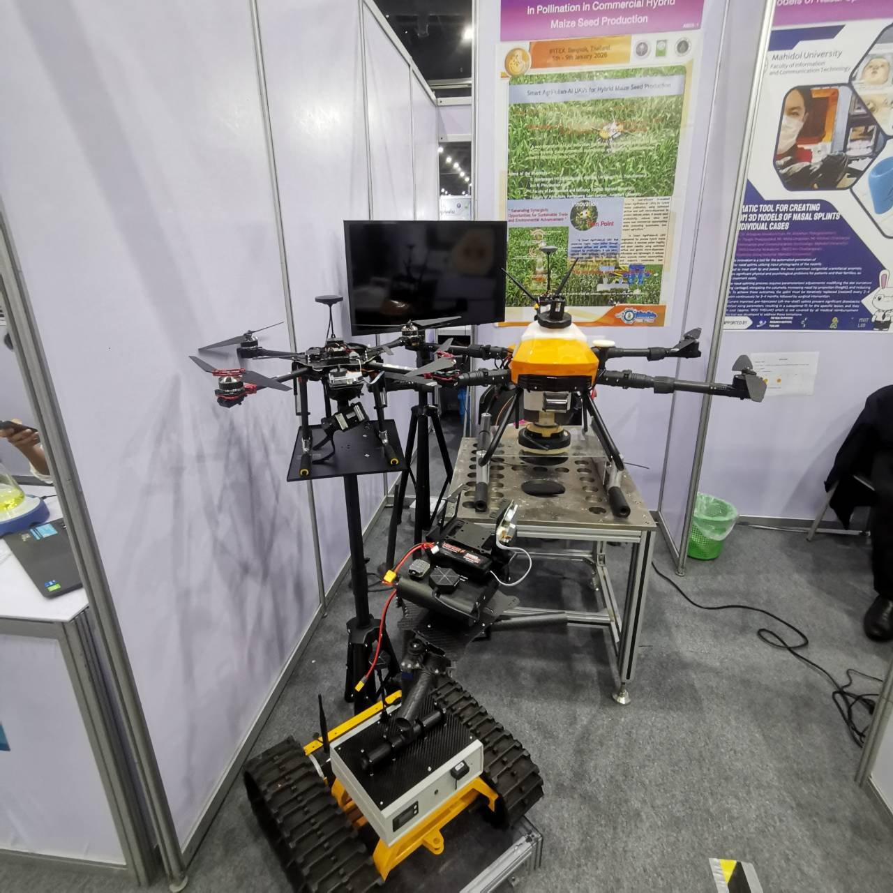 เทคโนโลยีเกษตรแม่นยำด้วยระบบหว่านสารเคมีแบบอัดเม็ดด้วยอากาศยานไร้นักบินทางการเกษตรแบบขึ้นลงทางดิ่งแบบหลายใบพัดระบบปัญญาประดิษฐ์เพื่อช่วยการผสมเกสรสำหรับการพัฒนาการผลิตเมล็ดพันธุ์ผสมเพื่อการค้าของข้าวโพดเลี้ยงสัตว์ เพื่อช่วยผสมเกสรของการพัฒนาการผลิตเมล็ดพันธุ์ผสมเพื่อการค้าสำหรับการพัฒนาพันธุ์ผสม 30-50 ไร่/วัน ที่ใช้ร่วมกับอากาศยานไร้นักบินขึ้นลงทางดิ่งแบบ 4 ใบพัดระบบปัญญาประดิษฐ์ที่ติดตั้งกลไกเครื่องพ่นละอองเกสรสำหรับการผสมเกสรเกษรของการผลิตเม็ดพันธุ์ข้าวโพดลูกผสมที่แก้ไขด้านข้อจำกัดเกี่ยวกับคุณสมบัติของเกสรข้าวโพดที่มีการเสื่อมสภาพเร็วโดยผลของการพัฒนาสามารถใช้เป็นต้นแบบระบบอัตโนมัติขนาดเล็กนี้จะที่ก่อให้เกิดรูปแบบการผลิตข้าโพดรูปแบบใหม่การใช้พื้นที่ลดลงมากถึง1ใน 10 แต่มีมูลค่าต่อไร่สูงมากกว่าการปลูกแบบเดิม10 เท่าและผลจาการพัฒนาเทคโนโลยีนี้สามารถรองรับผู้ผลิตเมล็ดพันธุ์ข้าวโพดลูกผสมทางค้าและเมล็ดพันธุ์พืชไร่รายใหญ่ที่มีเครือข่ายระดับโลกและเกษตรกรที่เพาะปลูกข้าวโพดเลี้ยงสัตว์เดิมปรับเปลี่ยนเกษรเพาะปลูกข้าวโพดที่เป็นมิตรต่อสิ่งแวดล้อมและลดปัญหามลพิษจาก PM 2.5