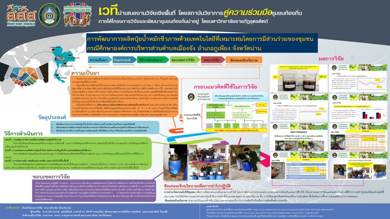 และส่งเสริมให้เกษตรกรรายย่อย หรือกลุ่มเกษตรกรสามารถผลิตปุ๋ยน้ำหมักชีวภาพจากวัสดุเหลือทิ้งที่มีอยู่ในท้องถิ่น