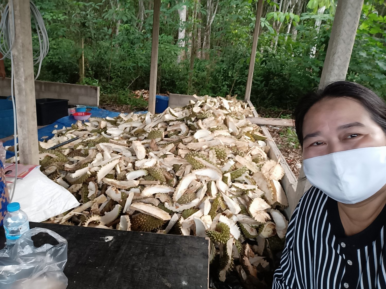 และผลผลิตเสียหายจากวาตภัย รวมถึงขยะเปลือกทุเรียนภายในจังหวัดจันทบุรีและใกล้เคียง นำมาแปรรูปเป็นเยื่อแห้งเพื่อเก็บไว้ใช้งานในโอกาสต่าง