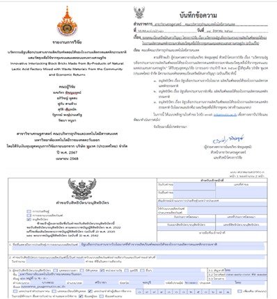 อิฐบล็อกประสานจากไบโอมาสที่เป็นผลิตภัณฑ์พลอยได้ของโรงงานผลิตกรดแลคติกธรรมชาติ