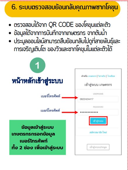 ตรวจสอบได้จาก QR CODE ของโคขุนแต่ละตัวข้อมูลได้จากการบันทึกจากเกษตรกร จากต้นน้ำประมูลออนไลน์สามารถสืบย้อนกลับไปดูที่สายพันธุ์และการเจริญเติบโต