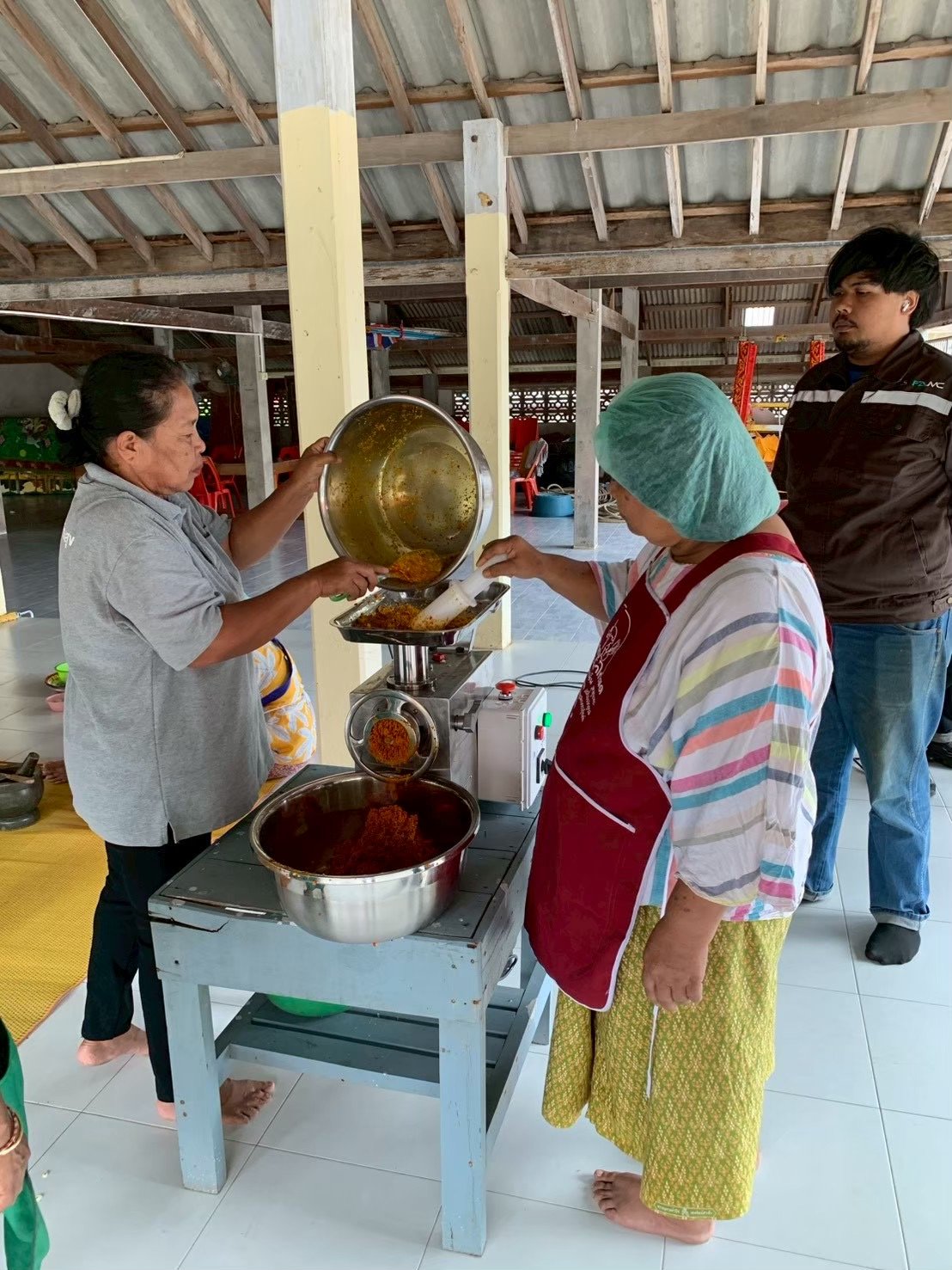 เครื่องย่อยพลาสติกสำหรับครัวเรือนมีลักษณะและหลักการทำงานที่สอดคล้องกับแนวคิดของเทคโนโลยีที่เหมาะสมเช่นเดียวกับเครื่องบดหยาบสำหรับการผลิตเครื่องแกง โดยใช้มอเตอร์ไฟฟ้าเป็นต้นกำลังในการขับเคลื่อนชุดเพลาและฟันย่อย ซึ่งออกแบบให้ทำงานเป็นลำดับขั้นตอน เพื่อลดภาระแรงงานคนและเพิ่มประสิทธิภาพในการแปรรูปวัสดุในขั้นตอนแรก ชุดเพลาฟันย่อยหยาบทำหน้าที่ตัดและย่อยพลาสติกชิ้นใหญ่ให้มีขนาดเล็กลง เพื่อให้สามารถส่งต่อไปยังขั้นตอนถัดไปได้อย่างต่อเนื่อง ลักษณะการทำงานดังกล่าวมีแนวคิดเดียวกับเครื่องบดหยาบเครื่องแกงที่ทำหน้าที่บดวัตถุดิบสมุนไพรให้แตกตัวในระดับหยาบก่อน เพื่อลดแรงต้านและภาระของระบบบดในขั้นละเอียดจากนั้น เศษพลาสติกที่ผ่านการย่อยหยาบจะถูกส่งต่อไปยังชุดเพลาฟันย่อยละเอียด ซึ่งขับเคลื่อนผ่านระบบเฟืองโซ่ ทำหน้าที่ตัดเฉือนวัสดุให้มีขนาดเล็กและสม่ำเสมอประมาณ 3–5 มิลลิเมตร ก่อนตกผ่านตะแกรงคัดขนาด ลักษณะการทำงานในขั้นตอนนี้มีความสอดคล้องกับกระบวนการบดเครื่องแกงในขั้นละเอียด ที่ช่วยให้เนื้อเครื่องแกงมีความสม่ำเสมอ พร้อมสำหรับการนำไปใช้งานหรือแปรรูปต่อการออกแบบเครื่องย่อยพลาสติกในลักษณะดังกล่าวสะท้อนแนวคิดเดียวกับเครื่องบดหยาบเครื่องแกง คือ การจัดการวัสดุหรือวัตถุดิบแบบ “ย่อยเป็นลำดับขั้น” จากหยาบไปละเอียด เพื่อเพิ่มประสิทธิภาพการทำงาน ลดเวลาในการผลิต ลดการใช้แรงงานคน และเอื้อให้ผู้ใช้งานในระดับครัวเรือนหรือชุมชนสามารถดูแล บำรุงรักษา และปรับใช้งานได้ด้วยตนเองอย่างเหมาะสม