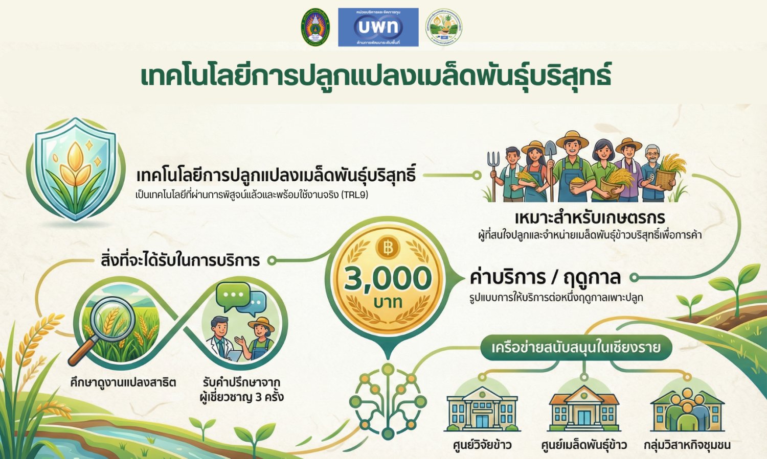 การสร้างระบบการผลิตเมล็ดพันธุ์ข้าวเหนียวเขี้ยวงูบริสุทธิ์ที่มีมาตรฐานและตรวจสอบได้ เมล็ดพันธุ์ที่ได้มีความบริสุทธิ์สูง