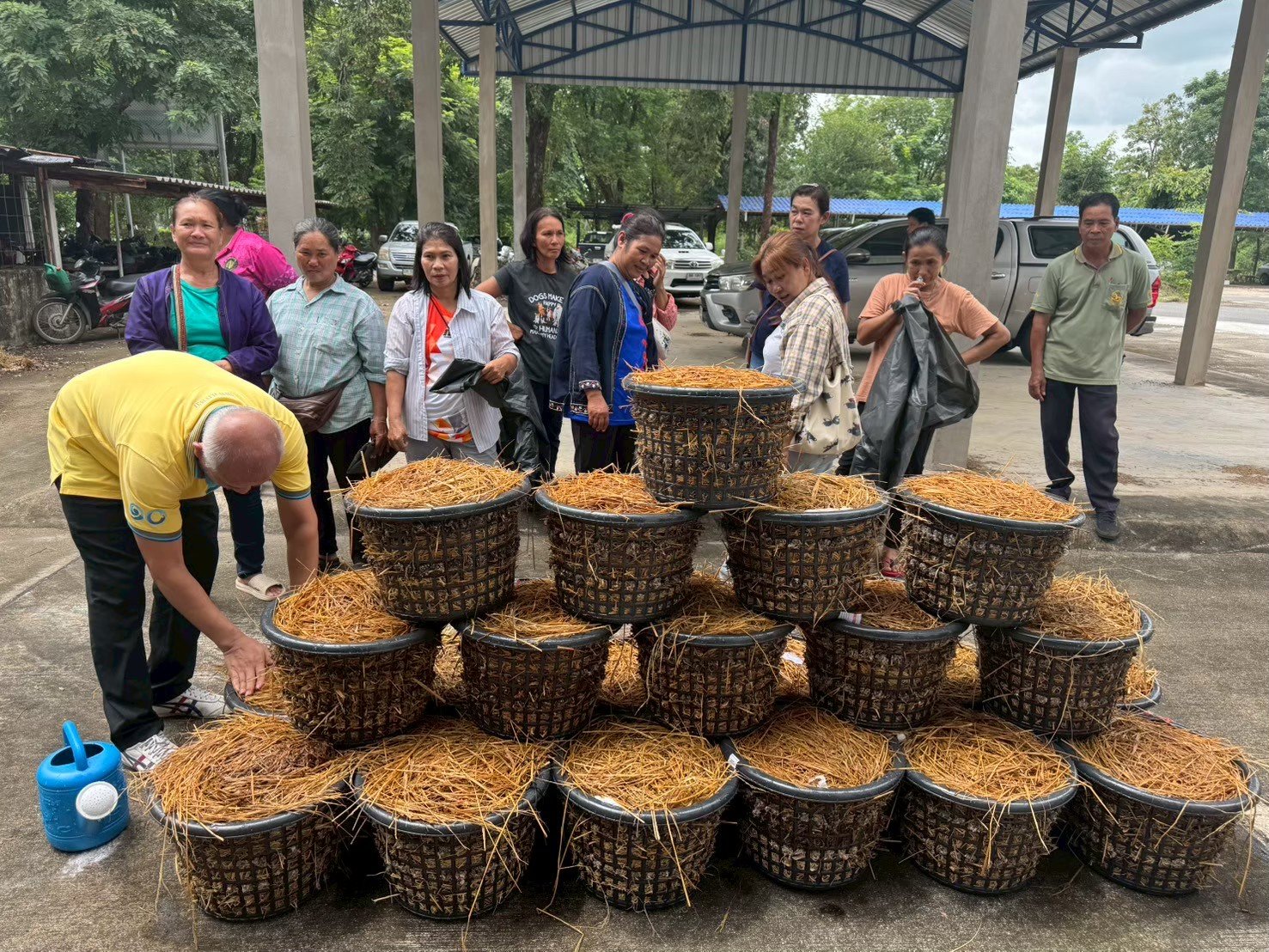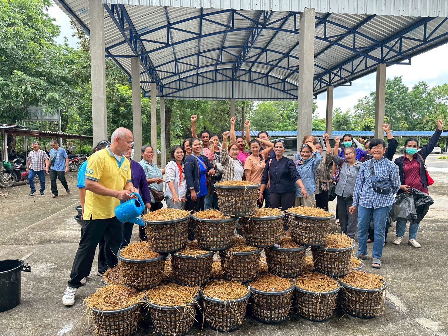 2) ใช้ระบบเพาะเห็ดแบบตะกร้า/โรงเรือนขนาดเล็ก ควบคุมต้นทุนต่ำ