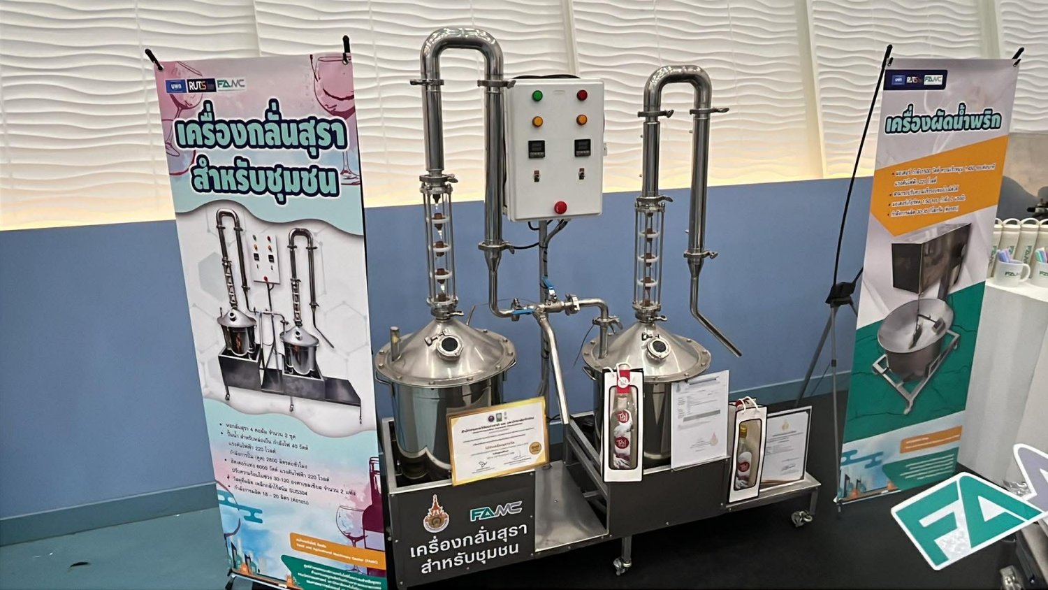 โครงสร้างหลักประกอบด้วย หม้อต้มสุรา, หอกลั่น 2 ชั้นที่มีแผ่นหรือวัสดุเพิ่มพื้นที่ผิว, ระบบควบแน่น (คอนเดนเซอร์) และ ระบบควบคุมอุณหภูมิและการไหล ช่วยให้กระบวนการกลั่นมีความเสถียร เหมาะสำหรับการผลิตสุราพื้นบ้านและสุราชุมชนในระดับกึ่งพาณิชย์