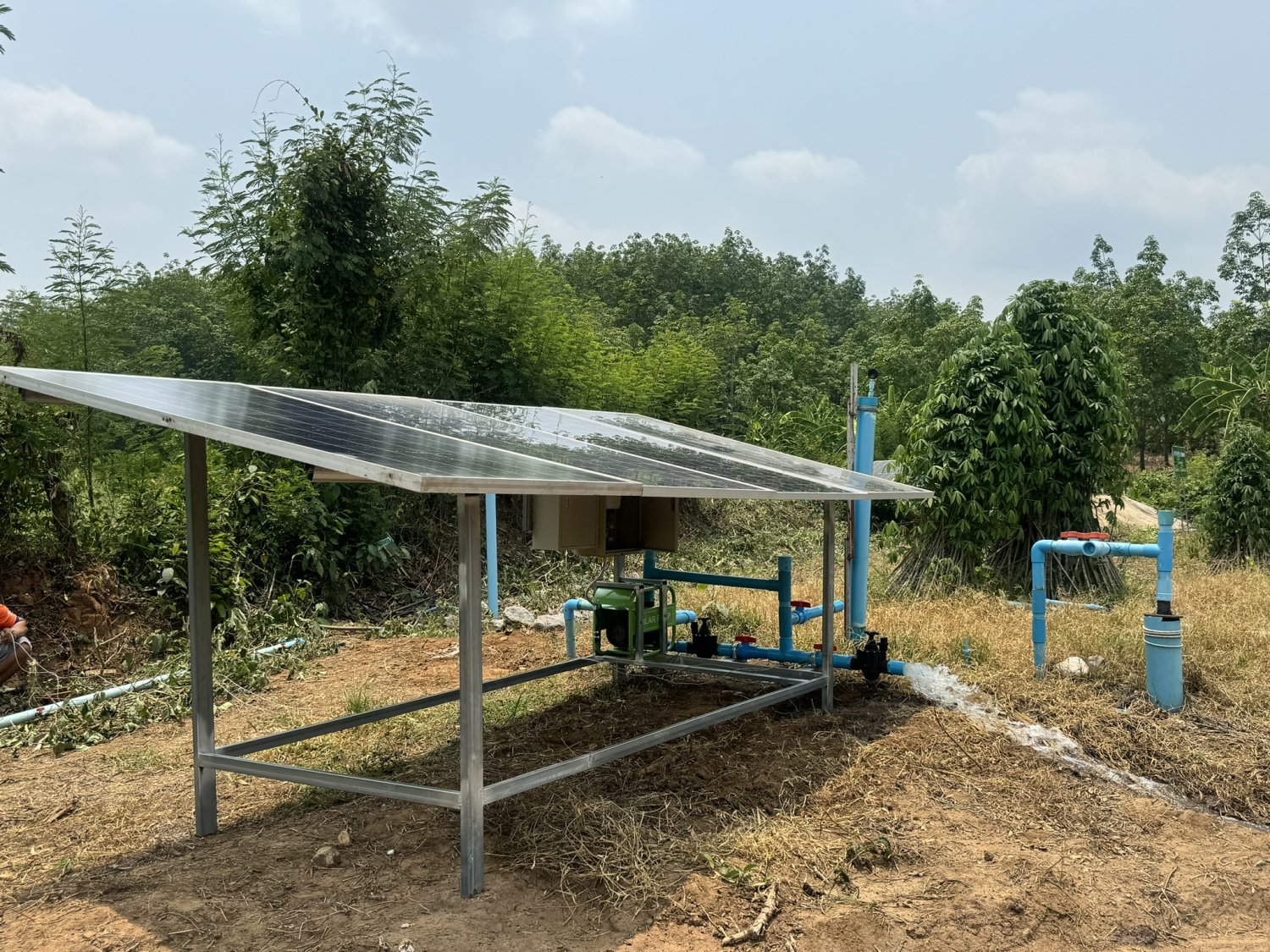 ระบบปั๊มน้ำโซลาร์เซลล์เพื่อส่งน้ำเข้าแปลงปลูก ใช้พลังงานแสงอาทิตย์ ลดค่าไฟและค่าเชื้อเพลิงอย่างชัดเจน ใช้งานได้จริง ในพื้นที่เกษตรนอกเขตชลประทาน โครงสร้างระบบ เรียบง่าย แข็งแรง ดูแลรักษาง่าย ใช้อุปกรณ์มาตรฐาน หาอะไหล่และซ่อมบำรุงได้ในชุมชน ปรับขนาดระบบได้ ตามพื้นที่แปลงปลูกและความต้องการใช้น้ำ ช่วยให้มีน้ำใช้อย่างสม่ำเสมอ เพิ่มประสิทธิภาพและผลผลิตทางการเกษตร และเป็นมิตรต่อสิ่งแวดล้อม