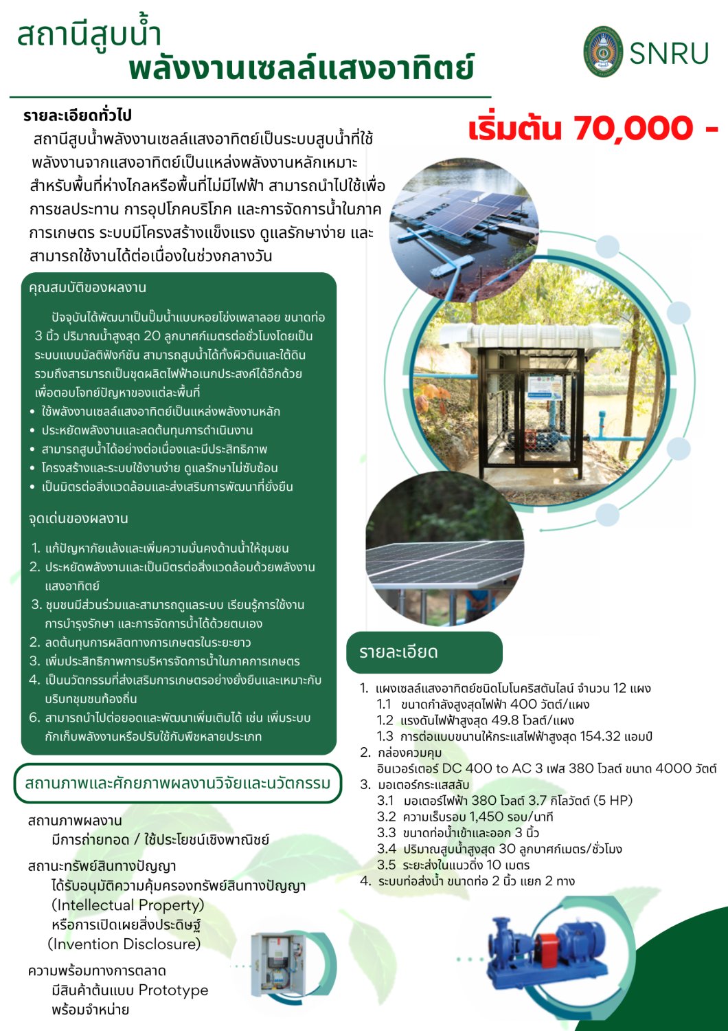 3.4 ปริมาณสูบน้ำสูงสุด 30 ลูกบาศก์เมตร/ชั่วโมง