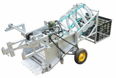 ชุดส่งมันฝรั่งไปยังถังเก็บ ลำเลียงหัวมันฝรั่งจากตะแกรงไปยังตะกร้ารับ ตะกร้ารับหัวมันฝรั่ง ทำจากโลหะหรือพลาสติก แข็งแรง มีช่องกรองดินบางส่วนก่อนเก็บผลผลิต