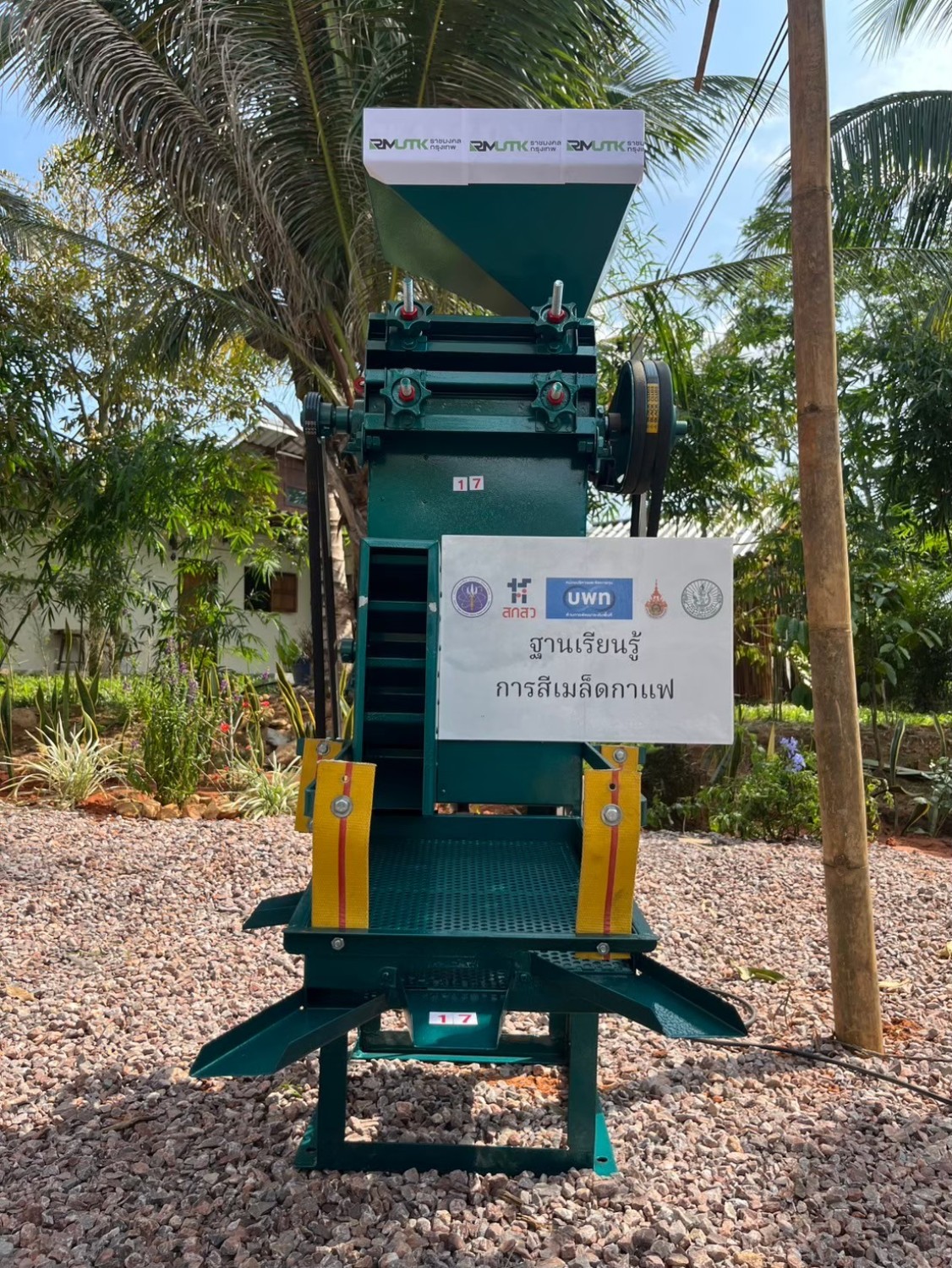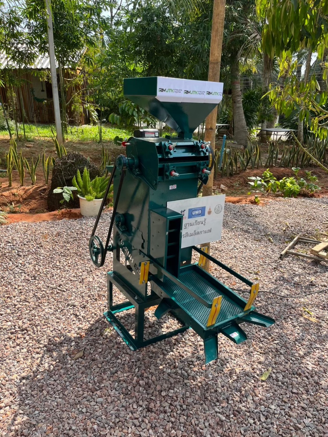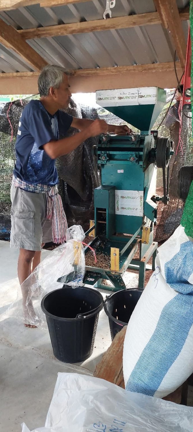 การบูรณาการเครื่องสีแห้งเมล็ดกาแฟร่วมกับอุปกรณ์คัดแยกแบบตะแกรง โดยใช้ระบบระบบสั่น สามาช่วยให้คัดแยกเมล็ดกาแฟได้ขนาดเท่ากัน ซึ่งช่วยในกระบวนการคั่วต่อไปโดยแยกได้ 3 ขนาด
