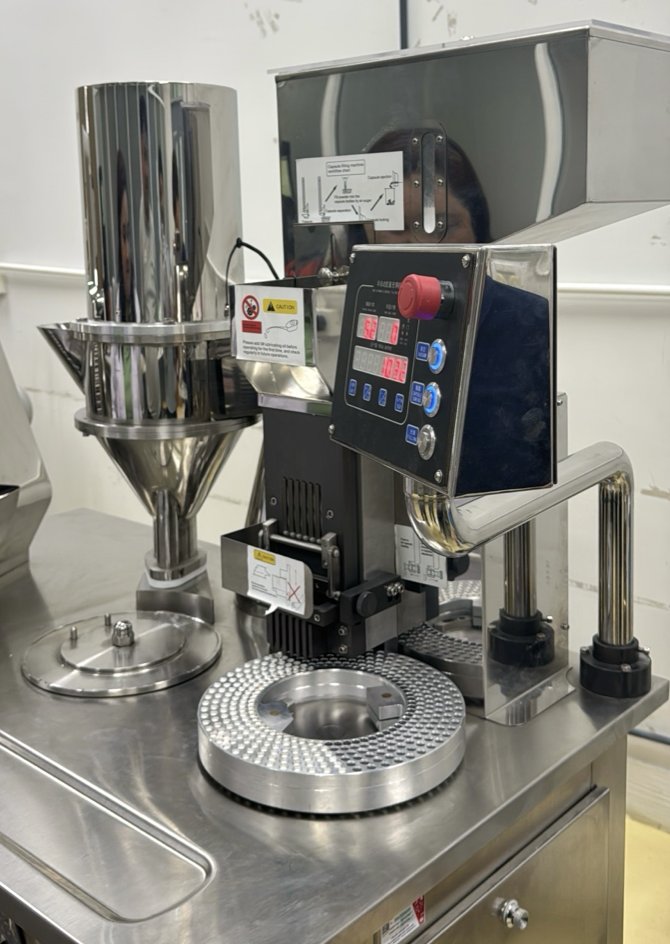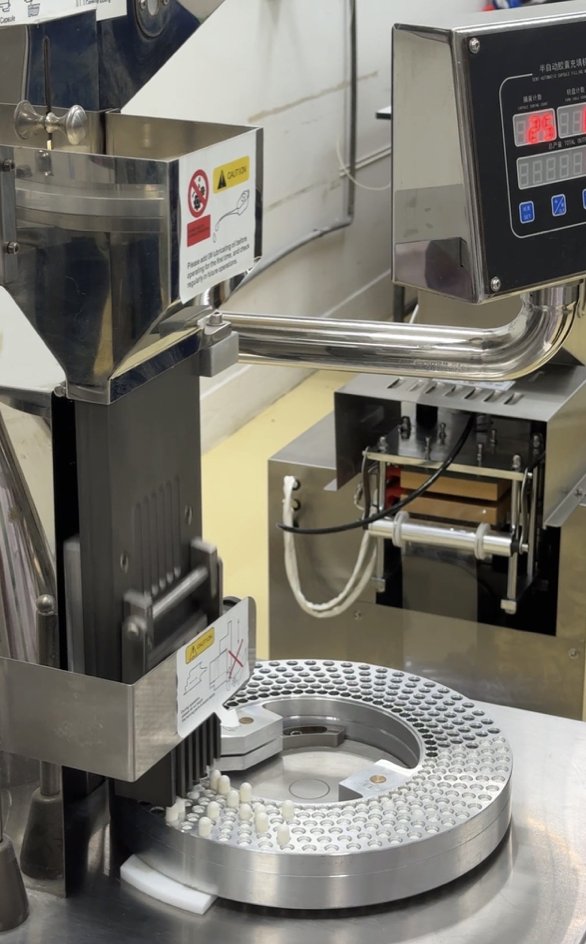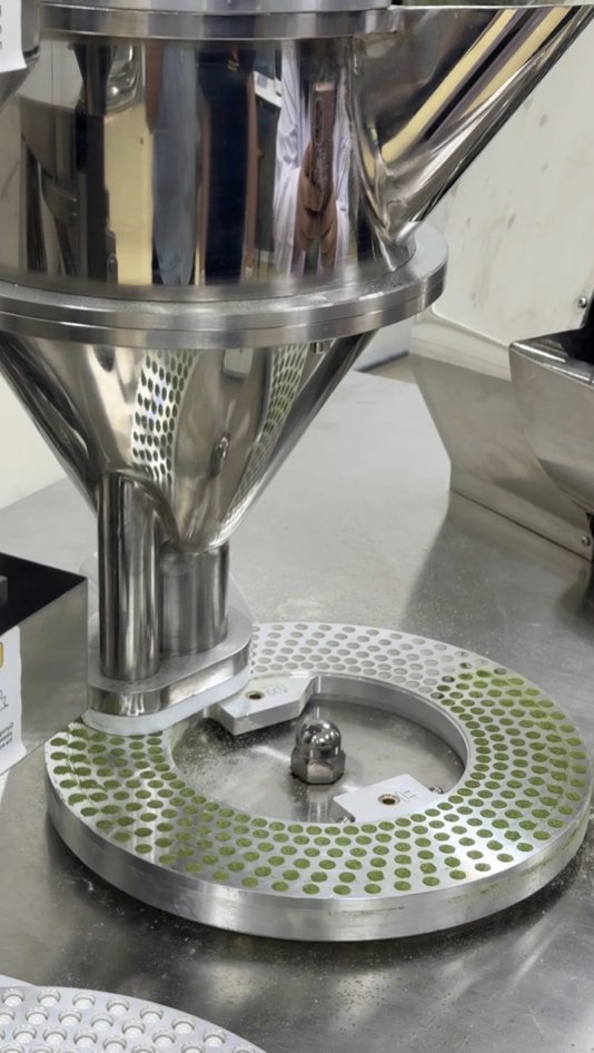 โครงสร้างเครื่องผลิตจาก สแตนเลสเกรดอาหาร/ยา ตามมาตรฐาน GMP มีระบบดูดฝุ่นและป้องกันการฟุ้งกระจายของผง
