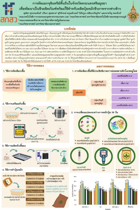 เทคโนโลยีการใช้จุลินทรีย์พื้นถิ่นในจังหวัดพระนครศรีอยุธยา "เพื่อเร่งการย่อยสลายฟางข้าว" เป็นเทคโนโลยีที่ ง่ายสะดวก และต้นทุนต่ำ ประกอบด้วยขั้นตอนการผลิต การขยายหัวเชื้อจุลินทรีย์พื้นถิ่นที่มีคุณสมบัติในการสร้างเอนไซม์ลิกโนเซลลูเลส