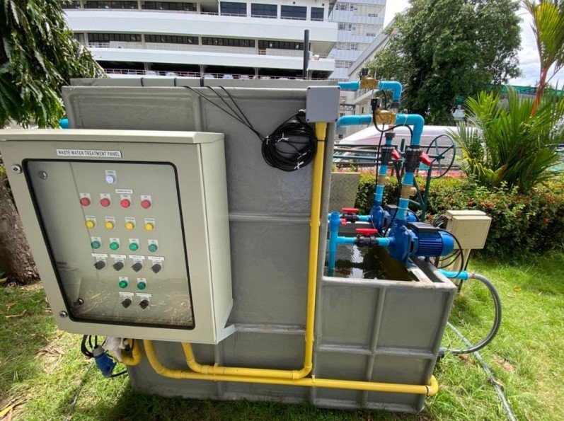 เข้าระบบ ถังปฏิกรณ์ปั๊มเติมอากาศ เมมเบรน ชุดควบคุมระบบ และระบบไฟฟ้าจากพลังงานแสงอาทิตย์ โดยระบบบำบัดน้ำแบบปกติจะทำการเดินระบบเพื่อบำบัดน้ำให้ค่าพารามิเตอร์ในน้ำออกจากระบบบำบัดนั้น ไม่เกินกว่าค่าที่กฎหมายกำหนด ระบบสาธิตของโครงการวิจัยมีการควบคุมปริมาณความเข้มข้นของตะกอน